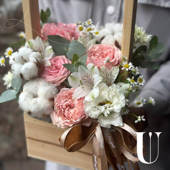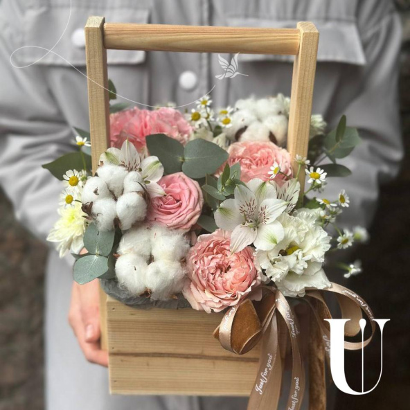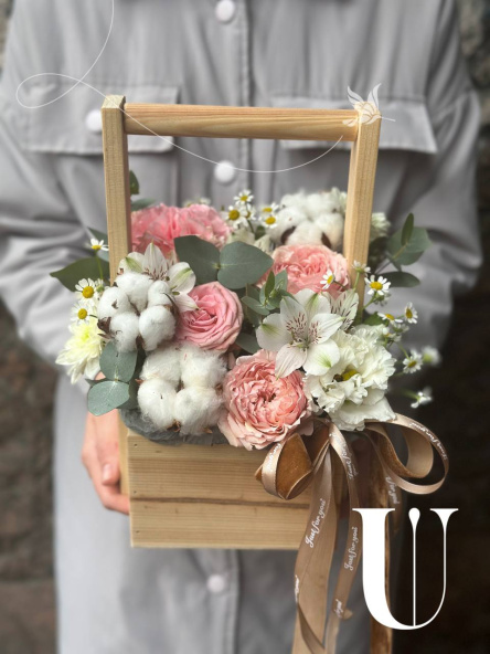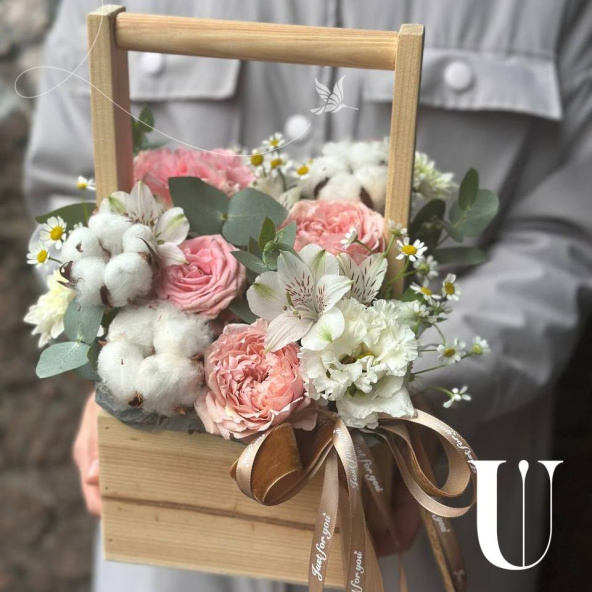 - Ящик деревянный, натуральный (выс. 15 см, выс.с ручкой 31 см, дл. 26, шир. 14 см) - 1 шт