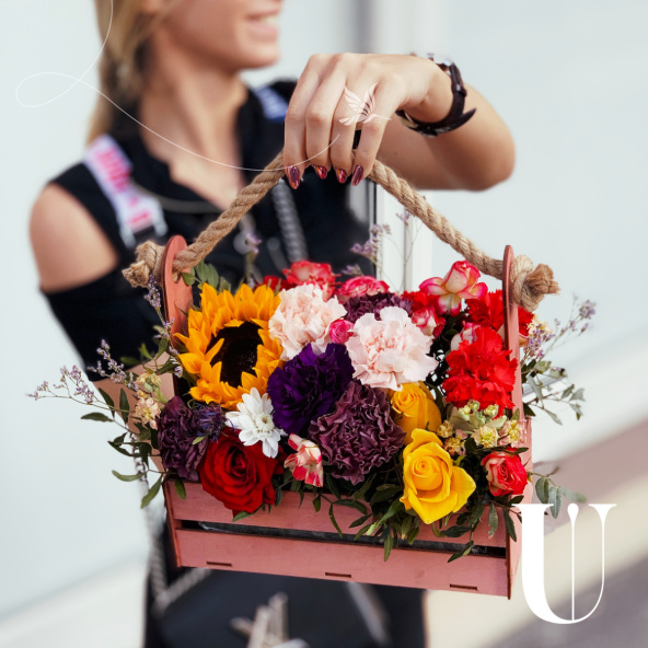 Авторская композиция в деревянном ящичке с веревочкой (ручкой) сверху