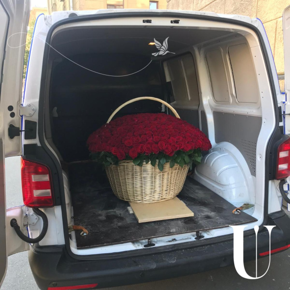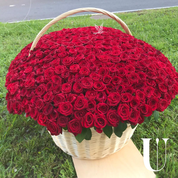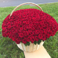 - Огромная Корзина из 501 красной Розы сорта Red Naomi. Корзина овальной формы, с высоким бортом и ручкой. Внутри флористическая губка, пропитанная водой. Важно понимать, что вес корзины превышает 100 килограммов, и она проходит не в каждую дверь