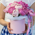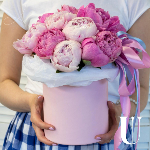 Пион - 15 шт., шляпная коробка 18*18, бумага тишью - 2 шт.