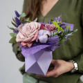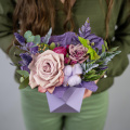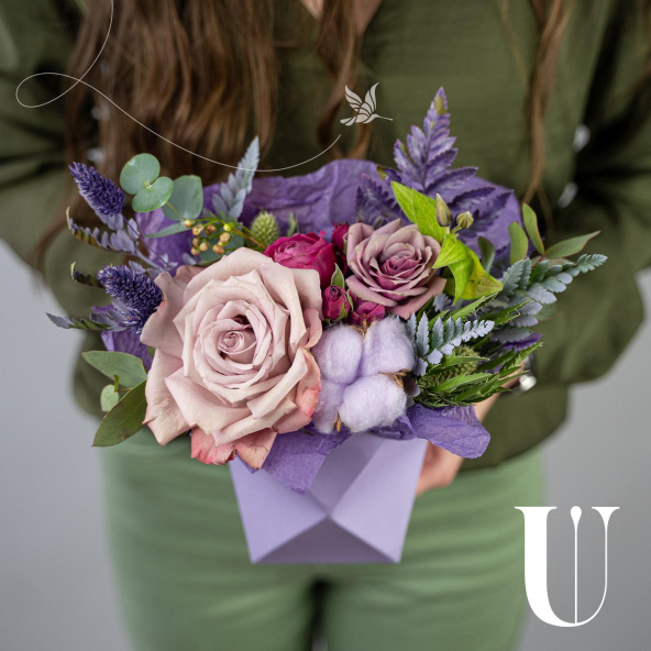 Мини-композиция из розовой гипсофилы в шляпной коробке