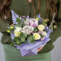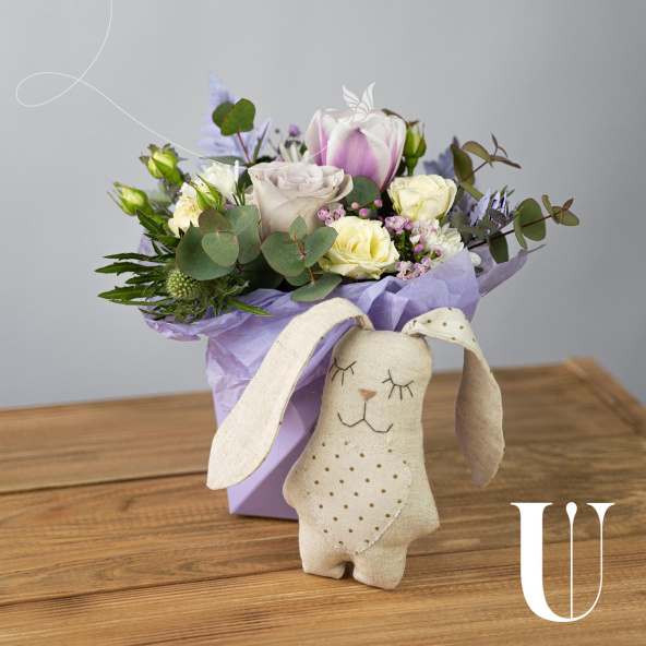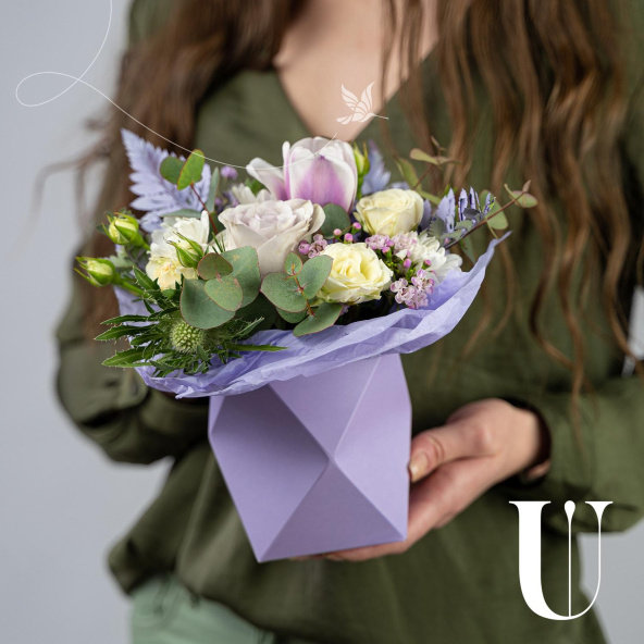 Мини-композиция из розовой гипсофилы в шляпной коробке