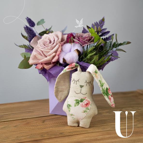 Заяц ручной работы лен, хлопок. Высота 15 см. - 1 шт