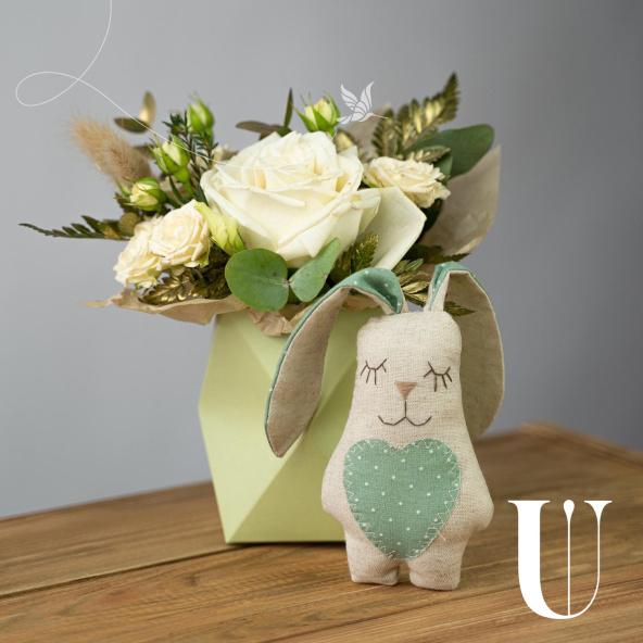 Заяц ручной работы лен, хлопок. Высота 15 см. - 1 шт