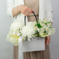 Композиция из белых роз, белой альстромерии и макаруни в коробке