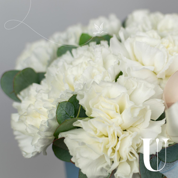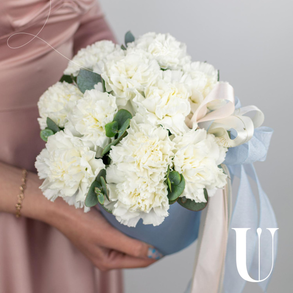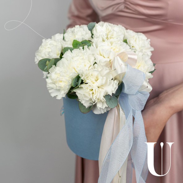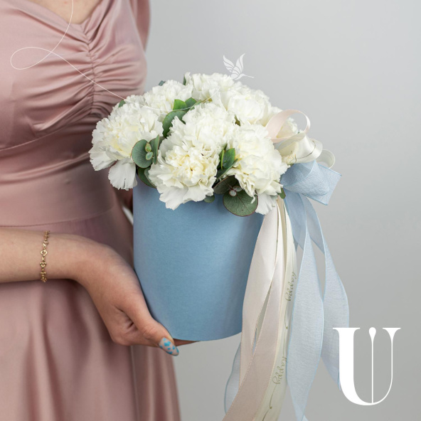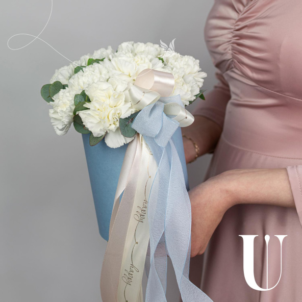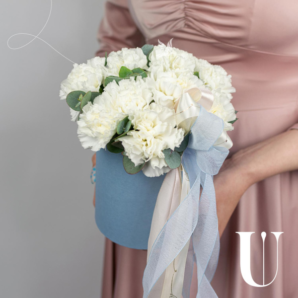 Коробочка с ромашковой хризантемой и лавандовой гипсофилой