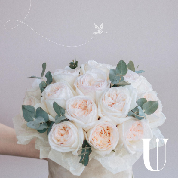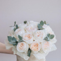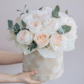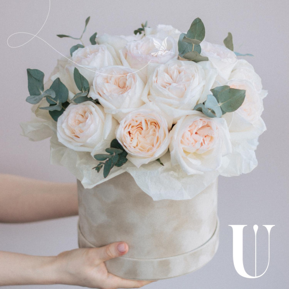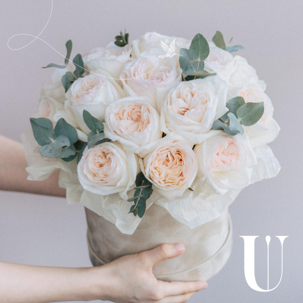 Композиция из 15 роз сорта Ред Наоми в серой шляпной коробке