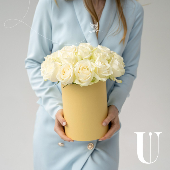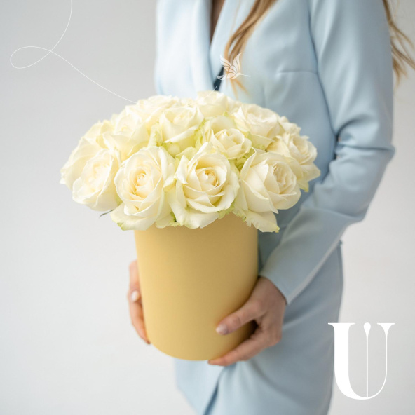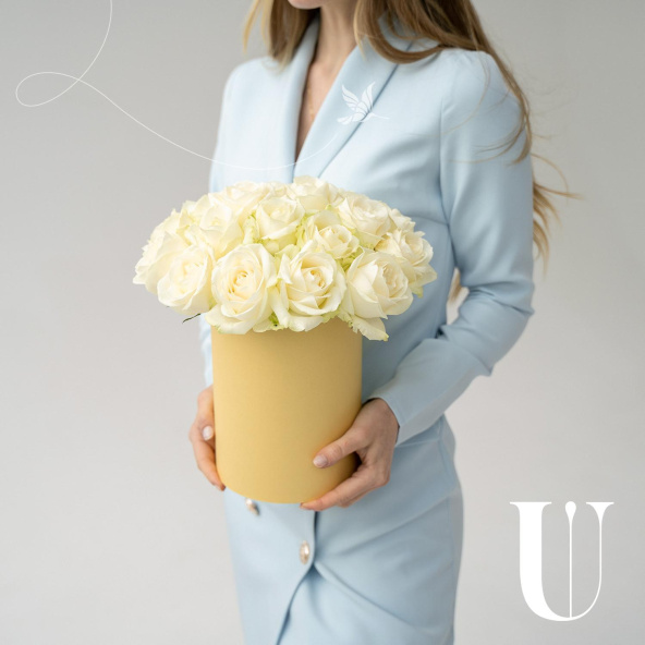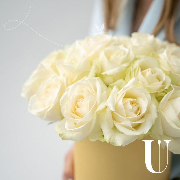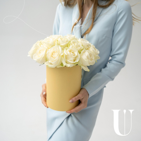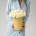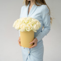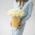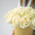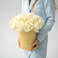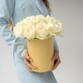 Композиция из 15 роз сорта Ред Наоми в серой шляпной коробке