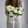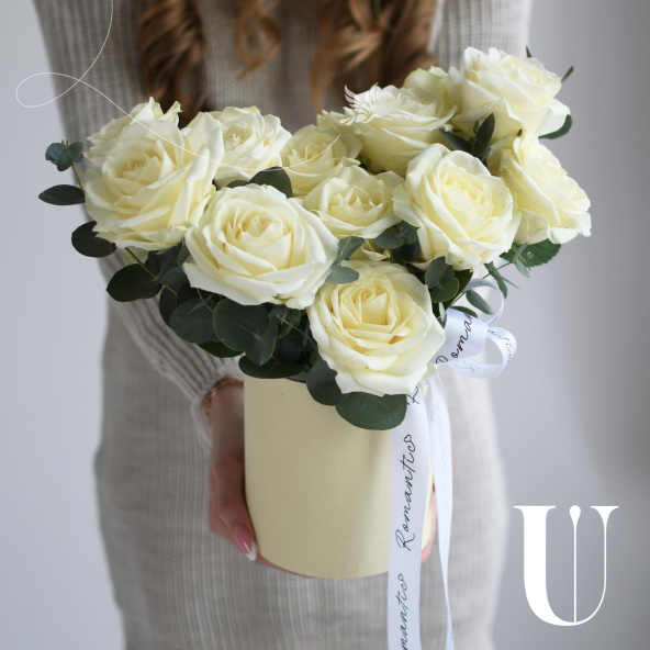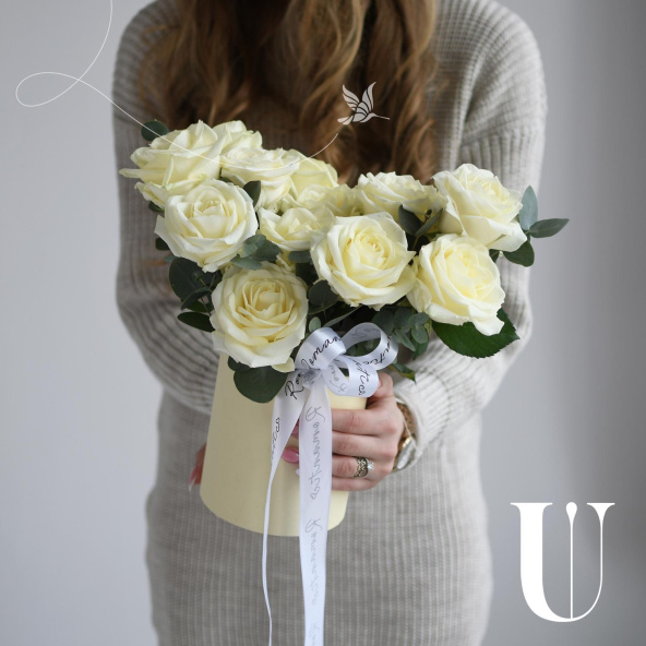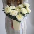 Композиция из 15 роз сорта Ред Наоми в серой шляпной коробке