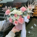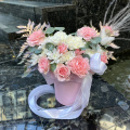 Цветочная композиция в розовых тонах и макаруни в подарочной коробке
