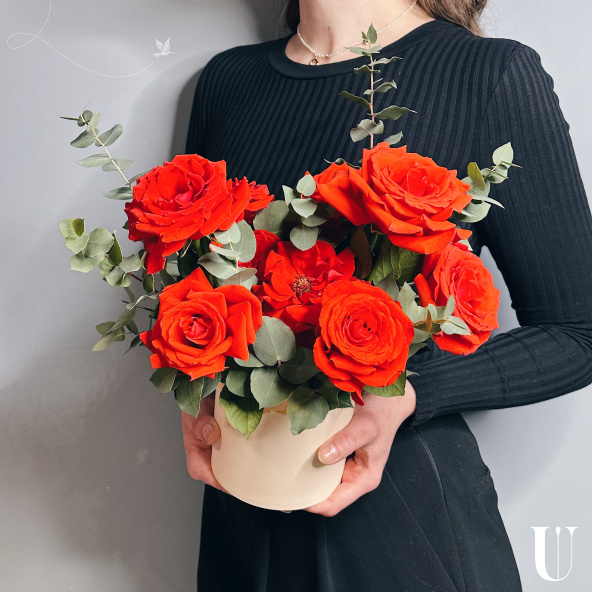 Цветы в коробке "Пылающая Роза"