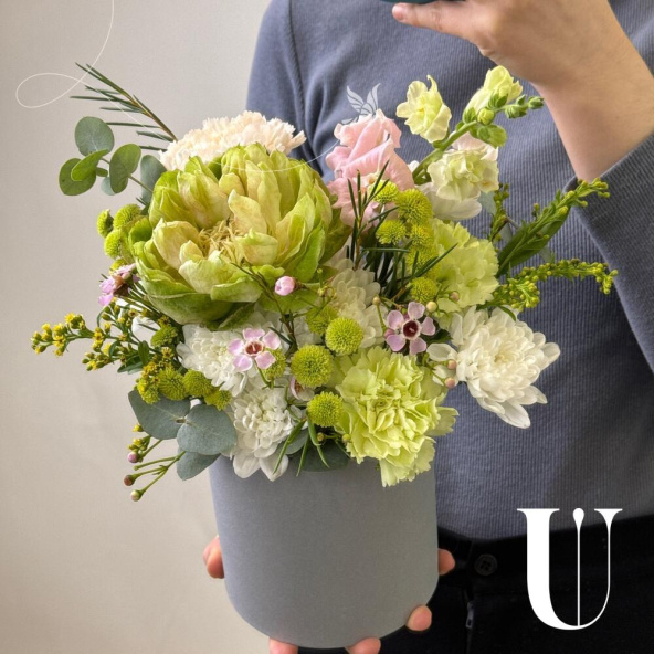 - Коробка круглая серая (выс. 10 см, диам. 17 см) - 1 шт