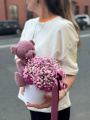 Коробочка с ромашковой хризантемой и лавандовой гипсофилой