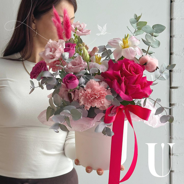 - Шляпная коробка белая (выс. 13 см, диам. 14 см) - 1 шт