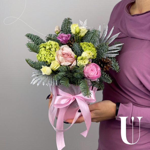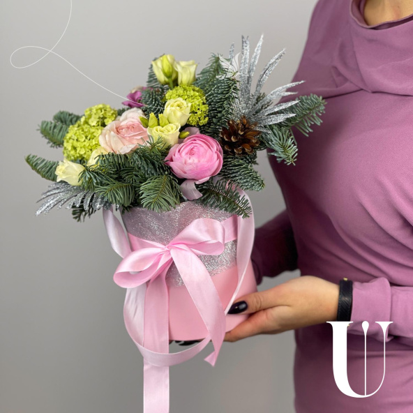 - Шляпная коробка нежно-розовая (выс. 15 см, диам. 12 см) - 1 шт