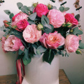- Пионовидные розы, как кустовые, так и одноголовые, эвкалипт. Цвет коробки может отличаться от фото. Мы уточним эту деталь, связавшись с вами после оформления заказа
