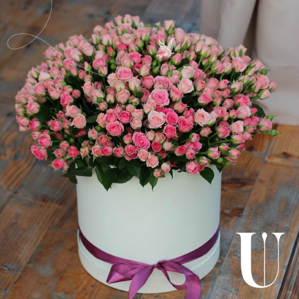 Цветы в коробке "Шляпная коробка с кустовыми розами"