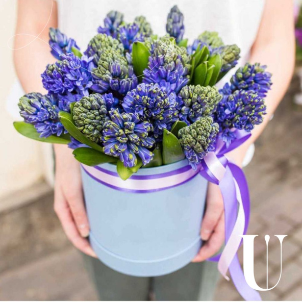 Нежная цветочная композиция и макаруни в подарочной коробке