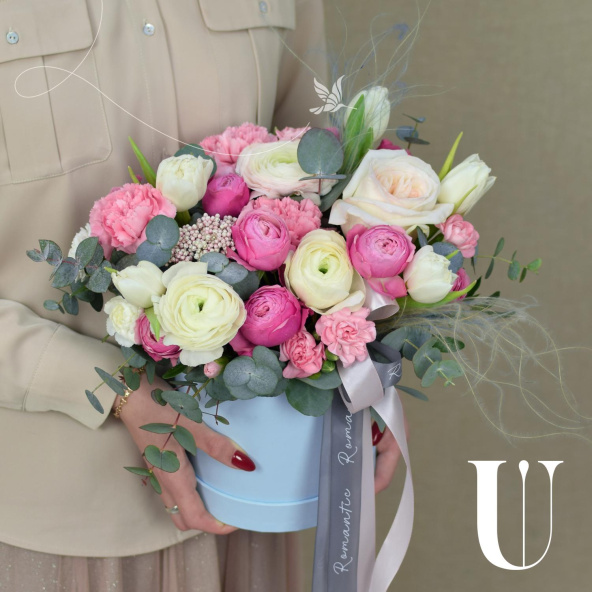- Весенняя цветочная композиция в шляпной коробке