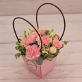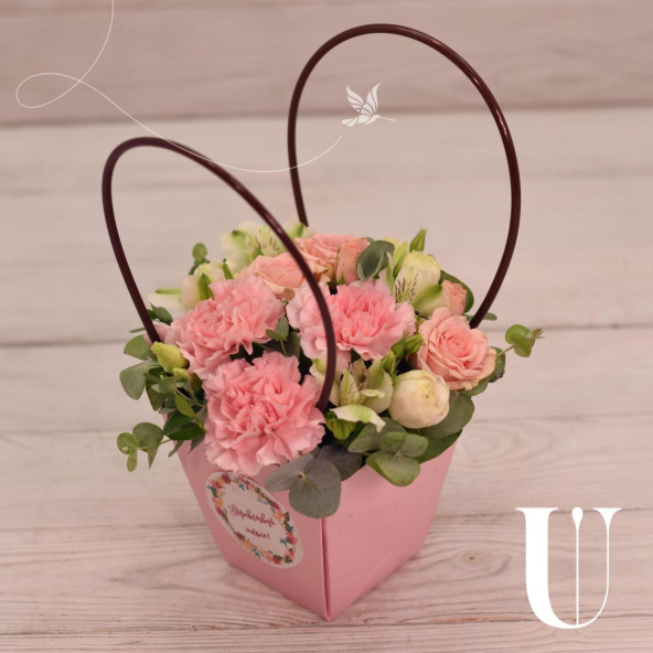 Мини-композиция из розовой гипсофилы в шляпной коробке