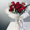 Монобукет из 15 красных роз в матовой пленке