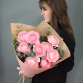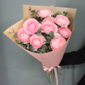 Монобукет из 11 пионовидных роз Кахала в упаковке