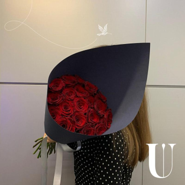 Монобукет из 7 роз сорта Ред Наоми в матовой пленке