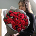 - Роскошный букет из 25 пионовидных роз в лаконичной упаковке