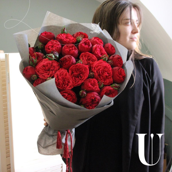 - Роскошный букет из 25 пионовидных роз в лаконичной упаковке