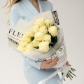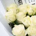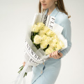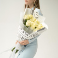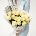 Монобукет из нежно-розовых кустовых пионовидных роз в белой упаковке
