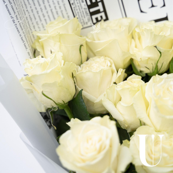Монобукет из 9 роз сорта Мондиаль в упаковке