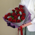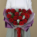 Монобукет из 15 красных роз в белой упаковке