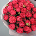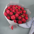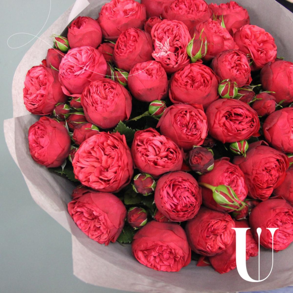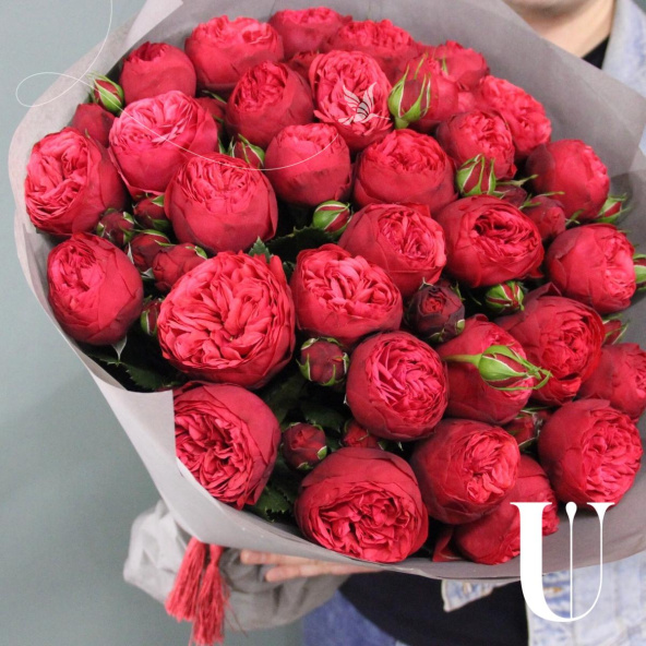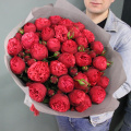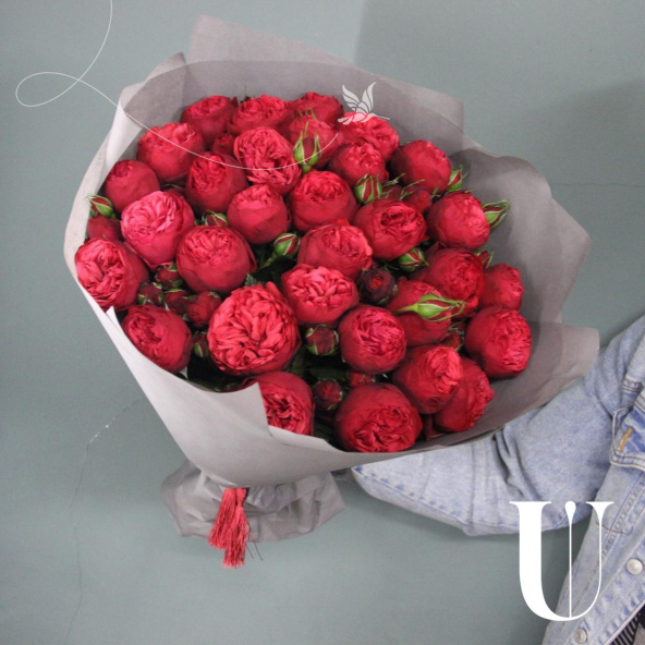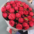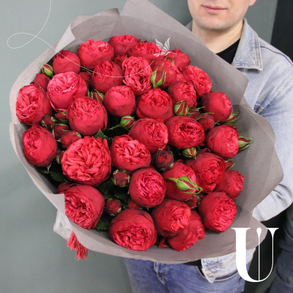 Букет из 31 пионовидной розы red piano, в лаконичной упаковке.