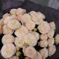 Нежный букет из девяти кустовых пионовидных роз в лаконичной упаковке.