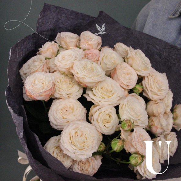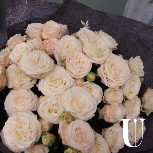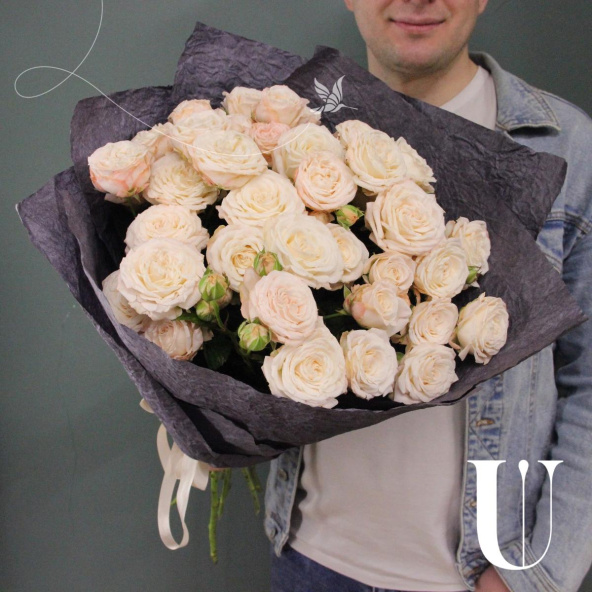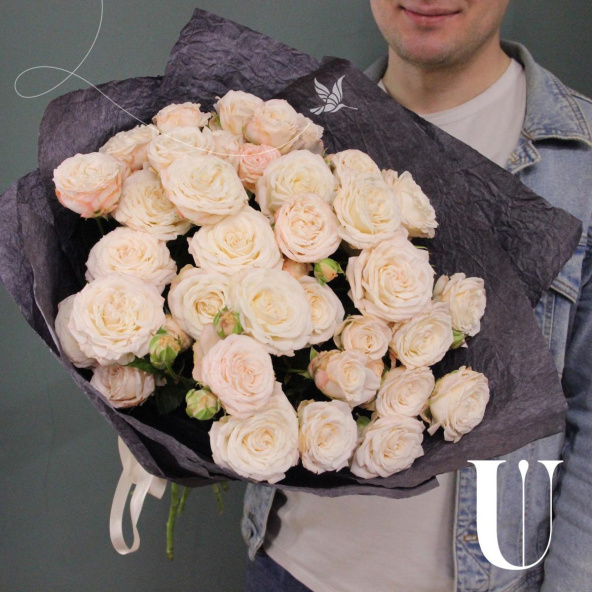 Букет из кремовых роз Шиммер в дизайнерской упаковке