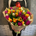 Букет микс из 35 тюльпанов в крафтовой упаковке (цвета в ассортименте)