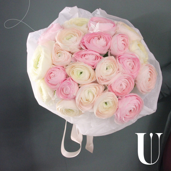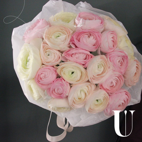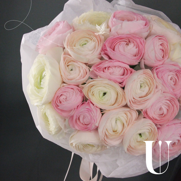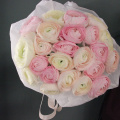 Букет из 25 нежных ранункулюсов клуни в лаконичной упаковке