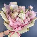 Монобукет из розовых гвоздик в дизайнерской упаковке