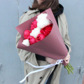 Монобукет из белых роз сорта Кэндл Лайт в матовой пленке