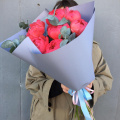 Монобукет из роз Готча и роз Пинк Мондиаль в дизайнерской упаковке