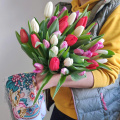 - Букет из 25 разноцветных тюльпанов без упаковки