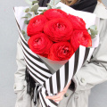 Монобукет из 5 роз сорта Мондиаль в дизайнерской упаковке