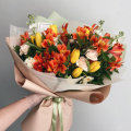 Монобукет из пионовидных роз Кахала и лимониума в нежной упаковке