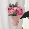 Монобукет из 5 ярко-розовых роз в розовой упаковке