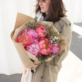 Стильный букет из пионвидных розовых роз в дизайнерской упаковке