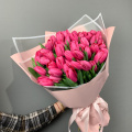Монобукет из 35 роз сорта Ред Наоми в дизайнерской упаковке