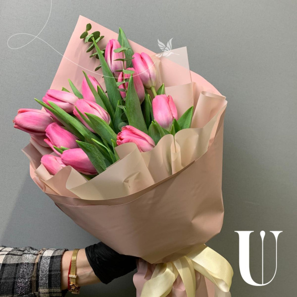 Букет из роз Пинк Охара и малиновых роз в дизайнерской упаковке