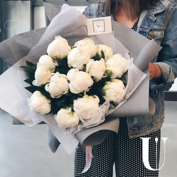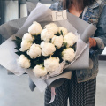 Монобукет из 11 пионовидных роз Кахала в упаковке