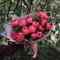 - 15 коралловых пионов, эвкалипт. Упаковка - корейская пленка