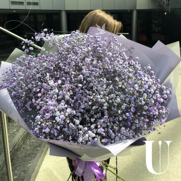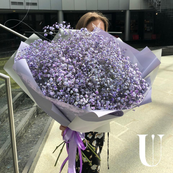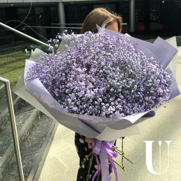 Монобукет из 15 светло-фиолетовых диантусов в упаковке